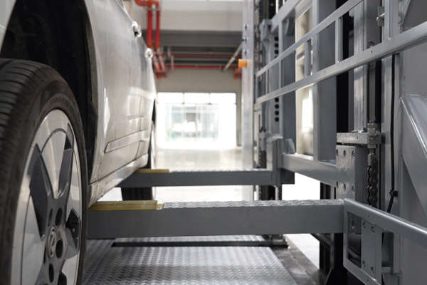 其次,之前換電方式為抬輪胎方式,會產生上升時抬車平臺左右高低不一致,在電池包和車匹配時,會一邊的鎖止機構先接觸,另一邊后接觸,造成刮擦甚至鎖把車頂起來;特別是電池本身很重,電池取下后,又帶來車的傾斜變化及晃動。博眾精工通過“嵌入式抬車機構”技術創(chuàng)新,實現其和箱體渾然一體,從而讓換電一氣呵成,流暢無阻,精巧可控。